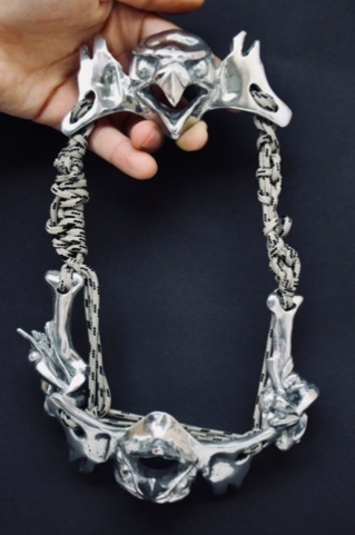Martina‘s collection takes us on a journey exploring fungi, drawing on her childhood memories of foraging with her mother. Her jewellery represents portals that explore life’s various stages.